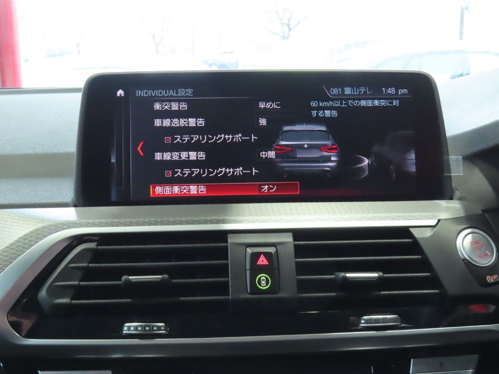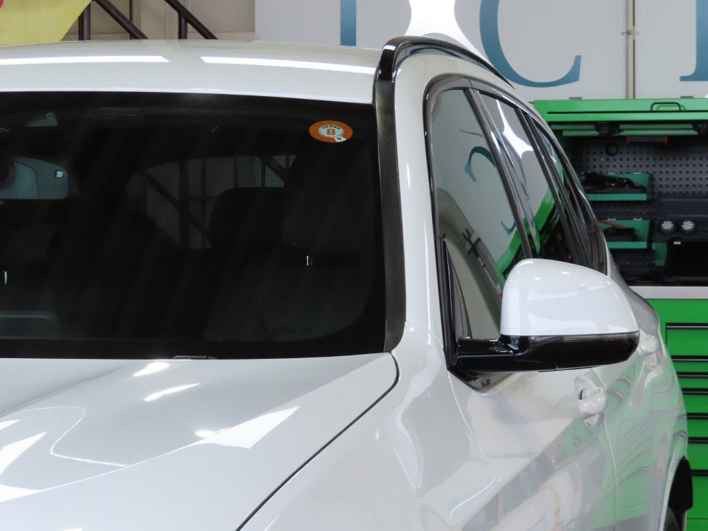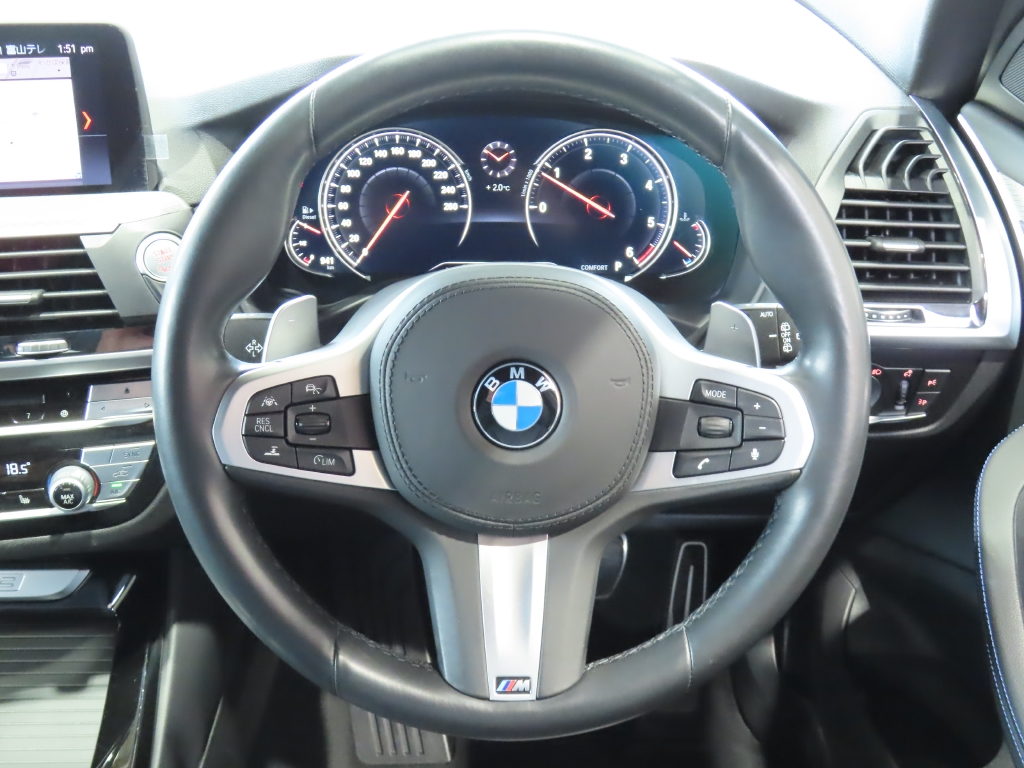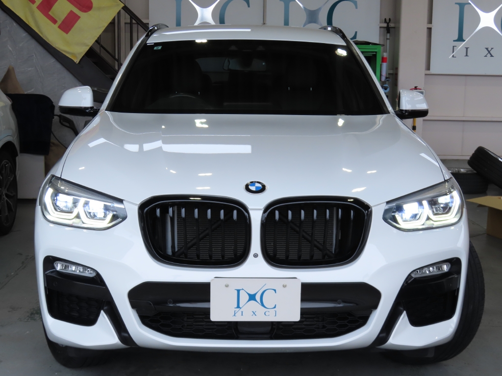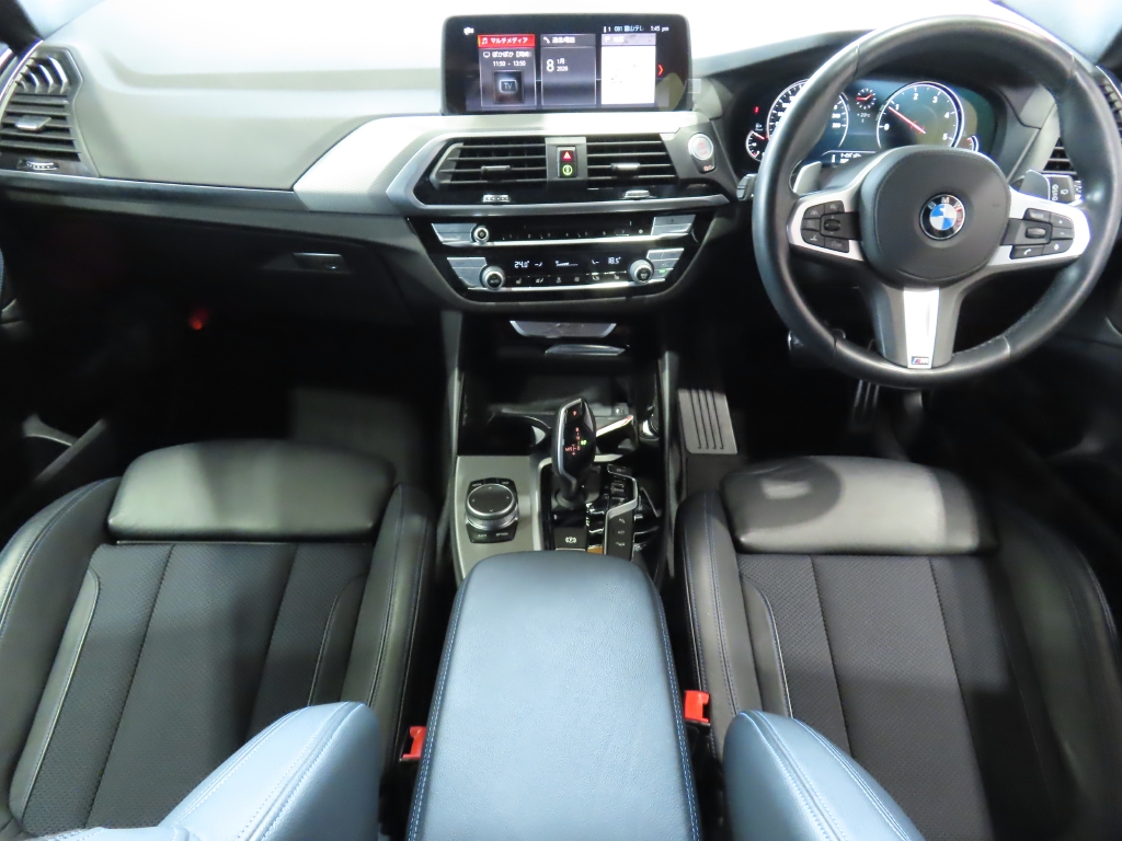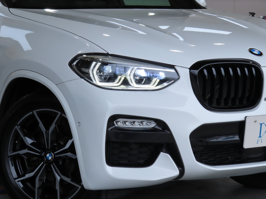 足元には、後期Mスポーツ純正19インチアルミホイールを装着し、高級SUVらしい力強さと品のある存在感を演出。 さらにフロントグリルをブラックグリルへ交換することで、BMWの洗練されたデザインが一層引き締まった印象となっています。