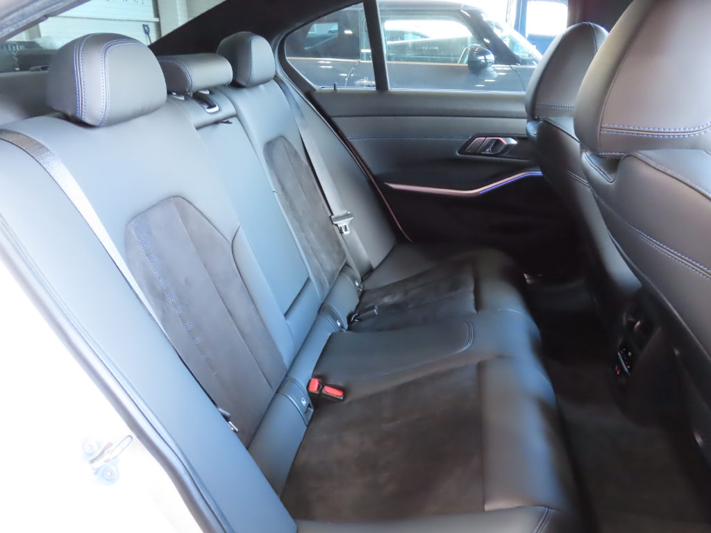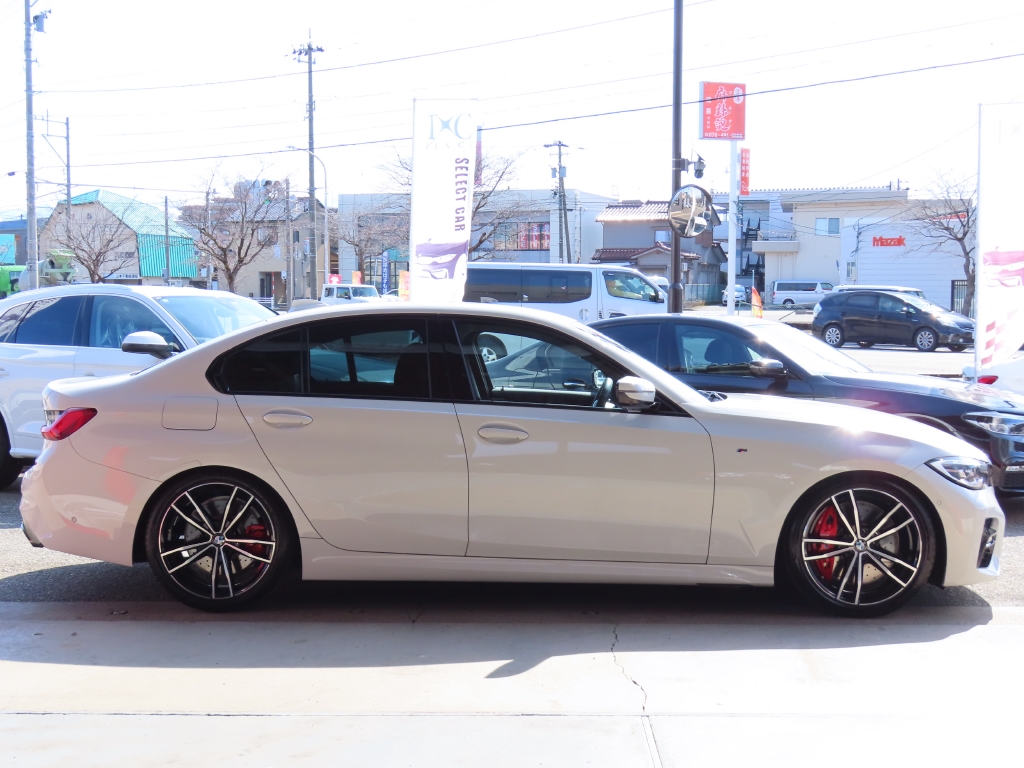 リアビューにはM340i用ディフューザーと、台形型マフラーエンドが特徴的なMテールパイプトリムを装備し、標準モデルとは一線を画す精悍な佇まいに仕上がっています。