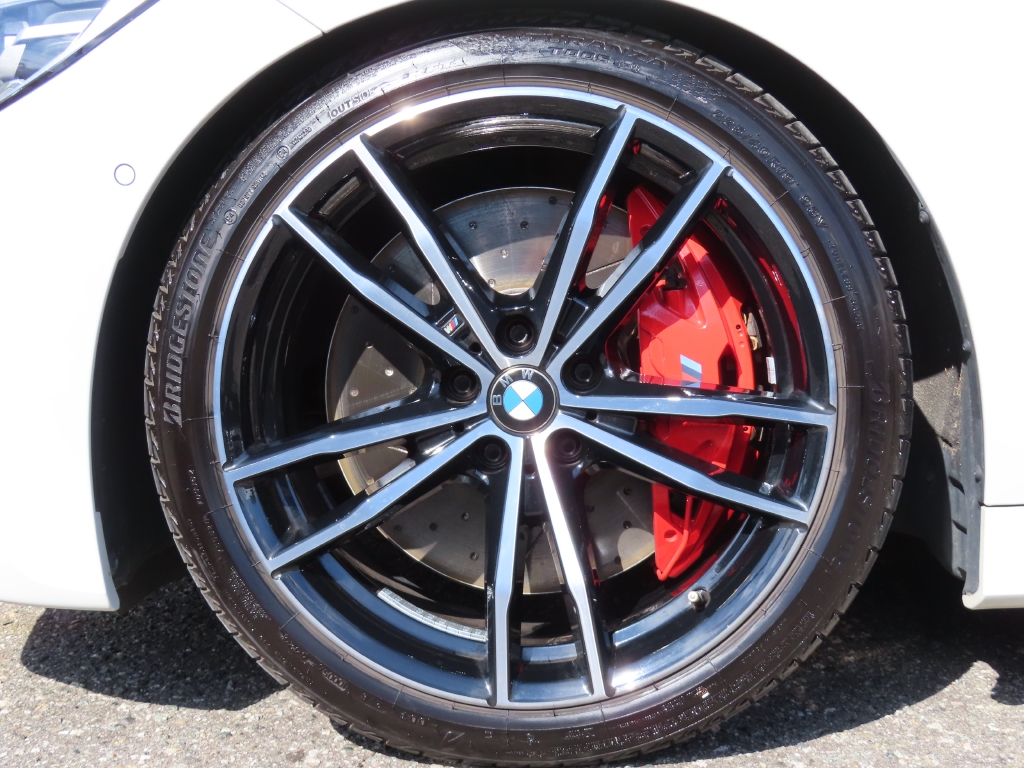 さらにサイドビューの主役となる「Mパフォーマンスブレーキ」は、取付に50万円以上を要する高額パーツで、赤いキャリパーとドリルド&スリット入りローターが圧倒的な存在感を放ちます。