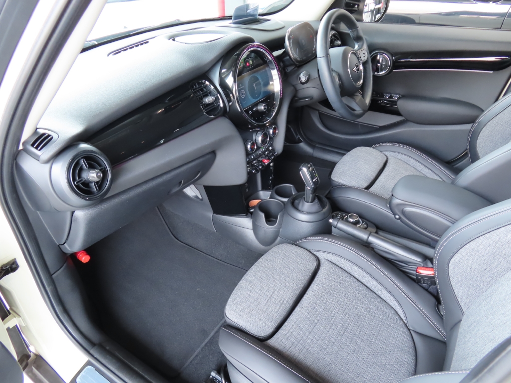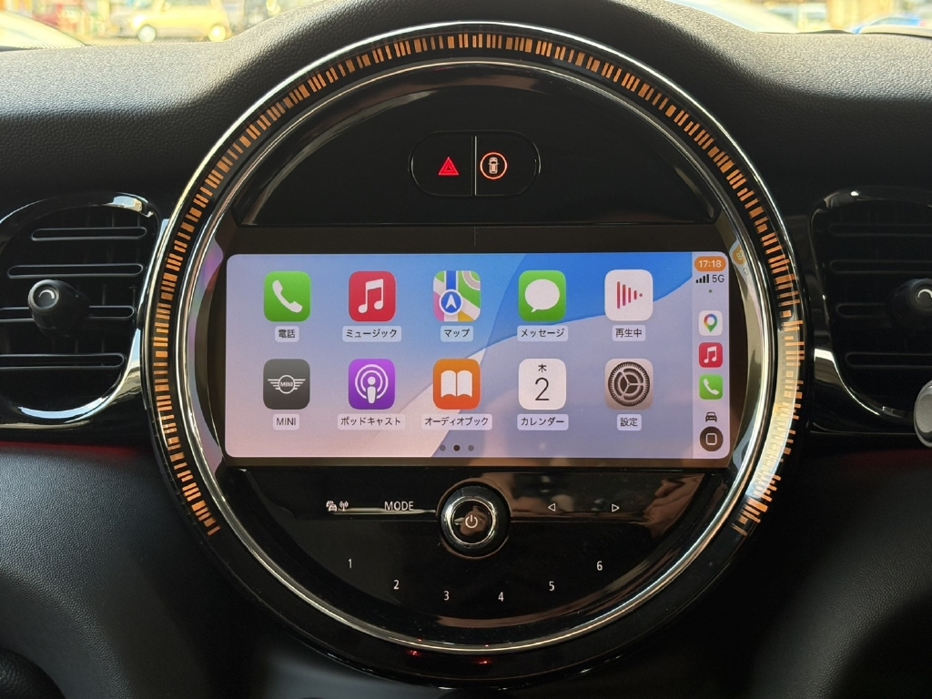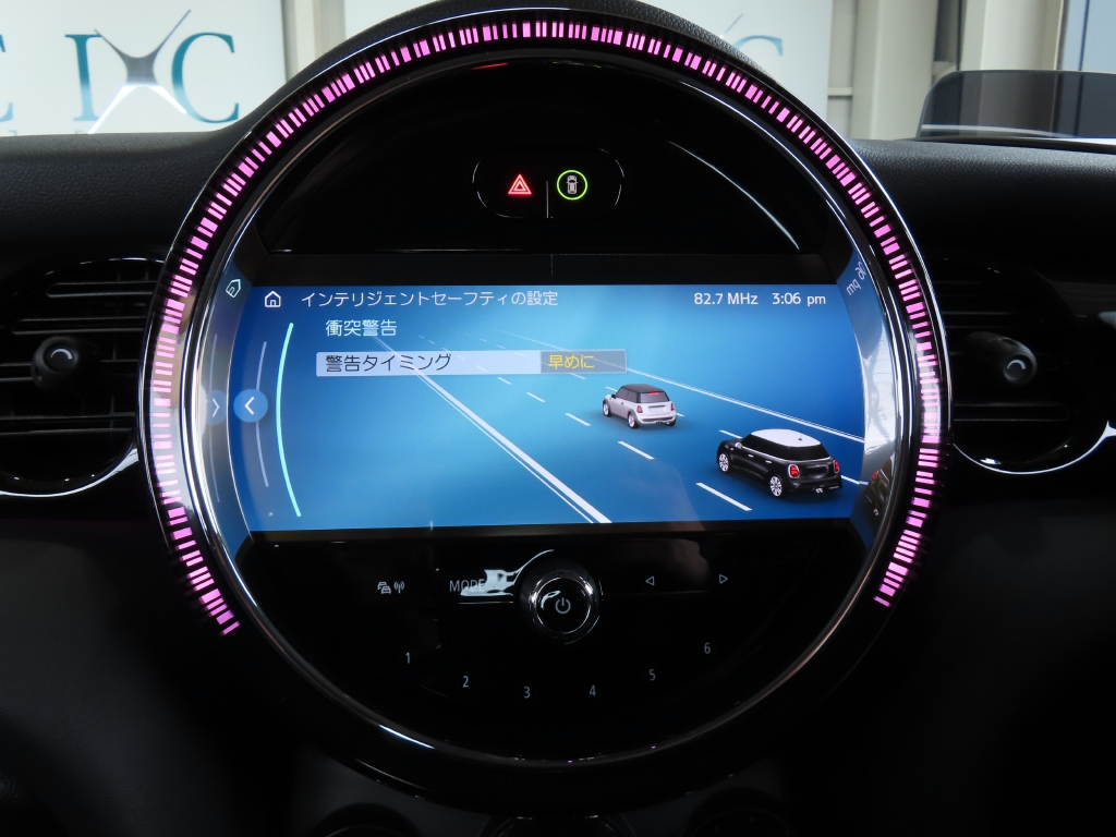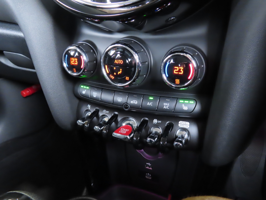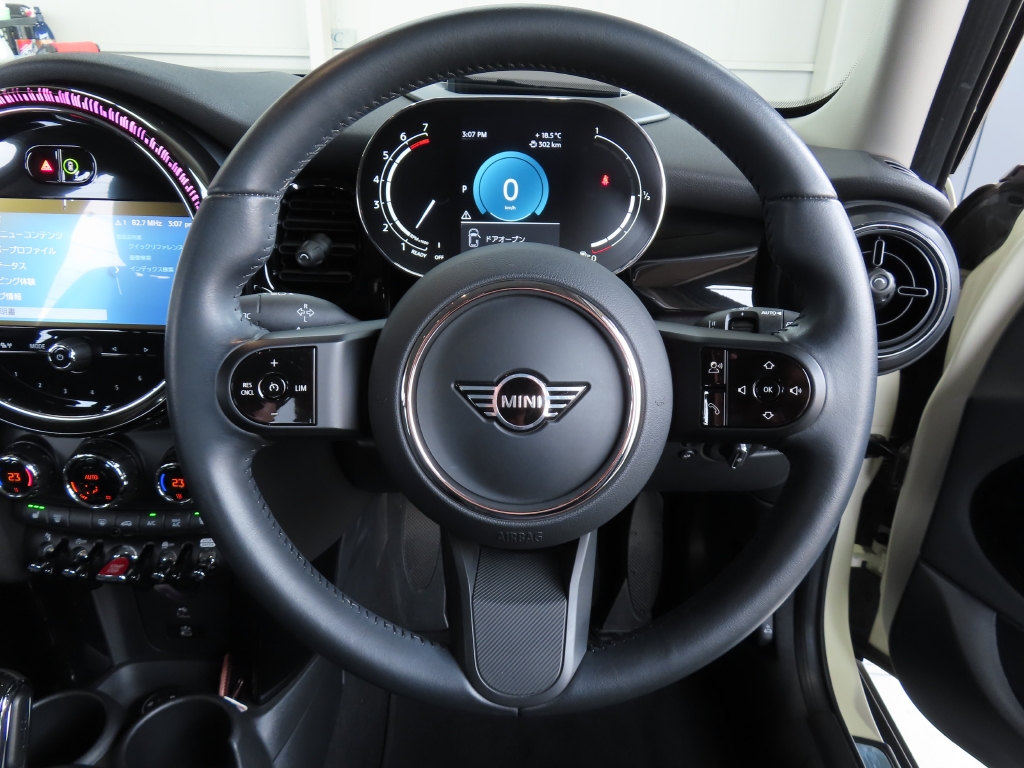 マルチディスプレイメーターパネル(液晶メーター) ピアノブラックインテリアトリム コンフォートアクセス(スマートキー) ハーフレザースポーツシート フロント左右シートヒーター オートエアコン スポーツレザーステアリング マルチファンクションステアリング フロントアームレスト レインセンサー アンビエントライト ライトパッケージ(インテリアランプLED) エキサイトメントパッケージ(ディスプレイ周囲のLEDリング、間接照明の発光カラーを選べる、外側ドアハンドルのLED照明、ドアミラー下部よりMINIロゴプロジェクション付) オートライト MINIドライビングモード(スポーツとエコの走行モード切替) ストレージコンパートメントパッケージ